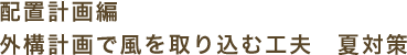 植栽で風を冷やす。そして冷やした風を室内へ取り入れます。地域の卓越風を誘導するしくみを作る事も重要です。