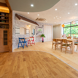 空間には無垢の床材や珪藻土などの自然素材をふんだんに盛り込み、