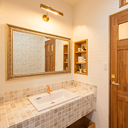 愛らしいタイルも豊富に展示。造作の洗面台や見切り材にも使用し、タイルの新しい使い方をご提案します。